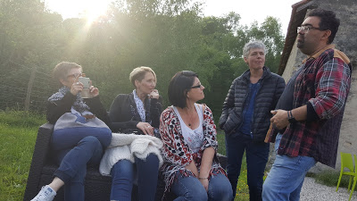 Le samedi soir, c’est diner avec les auteurs dans un lieu charmant à Sainte Fortunade, sur les hauteurs de Tulle à 10 ou 13 km, au fin fond de la campagne. Quatre myopes se retrouvent ensemble et c’est Béatrice qui nous prend en charge. Je vois déjà vos remarques : elles se sont encore perdues, et bien non. Nous y sommes arrivées sans difficulté !! Apéro, repas très très agréable, photos, discussions, enfin tout quoi. L’heure du retour arrive et nous voilà reparties très tôt le dimanche matin pour revenir à l’hôtel, il fait nuit, on n’y voit pas mieux les unes que les autres (et nous étions 5 dans le véhicule pour ce retour), et ho ! des petites choses marrons sur le bord de la route qui bougent dis donc (Béatrice), juste une petite horde de sangliers (Fabienne), allez ça passe. Ensuite sur ces petites routes tu ne sais plus où se trouve la droite et la gauche, c’est impressionnant, je sais pas d’où vient ce phénomène !! Merci Béatrice de nous avoir véhiculées, je crois que sinon on serait encore par là-bas, peut être…