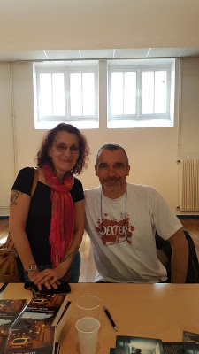 Samedi : le salon ouvre ses portes à 10h00 jusqu’à 18h00, de belles rencontres avec de nouveaux auteurs et de belles retrouvailles avec d’autres, et au fil de la journée les copines arrivent, que du bonheur, que d’émotions, des sourires, des rires, des fous rires, des bisous, des câlins, voilà, le salon de Tulle c’est ça. On navigue entre les uns et les autres, on discute de livres et d’autres choses.
