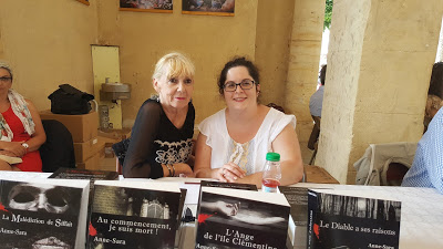 Anne-Sara et Stéphanie avec lesquelles nous avons toujours de belles discutions, dommage cette année nous avons zappé la photo de groupe. Tous ses romans étaient en présentation. Du noir mais pas que… et une belle plume.