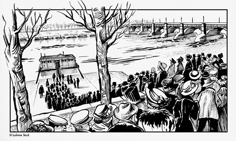 ⬇⬇⬇ Morgue flottante de Lyon face à l’Hôtel-Dieu où les cadavres inconnus y étaient exposés pour reconnaissance… sur le site ➡➡ « embaumement.com »