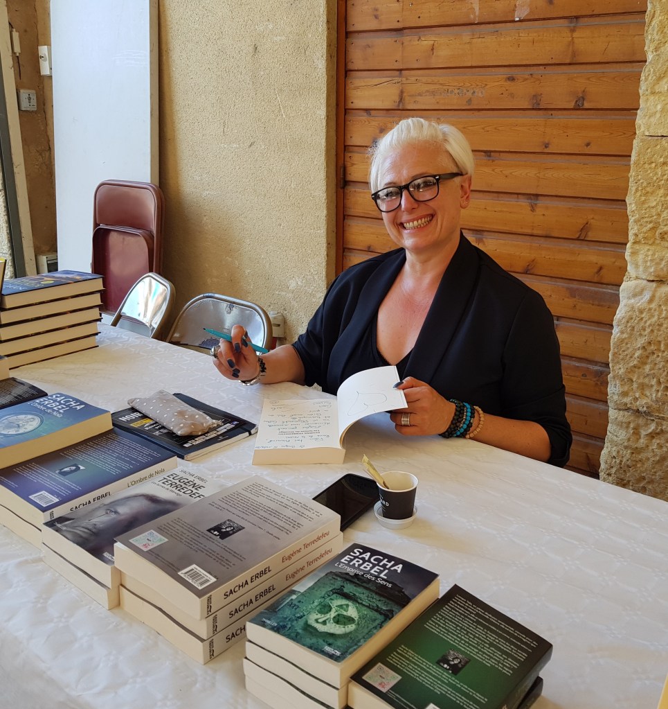 🌸 C’est au salon Noir Vézère du Bugue que j’ai rencontré une nouvelle fois l’auteure avec un immense plaisir, toujours le sourire et prête à discuter. Elle nous a fait l’honneur aussi d’une conférence ce jour-là autour de la criminologie avec quelques-uns de ses collègues. 🌸